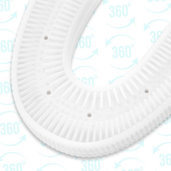 בעיצוב ייחודי המותאם לפה, המברשת מצחצחת את כל השיניים בו זמנית. כך מתקבל ניקוי יסודי גם באזורים קשים, עם פחות חיידקים, פחות ריח רע ויותר חיוך בטוח.
